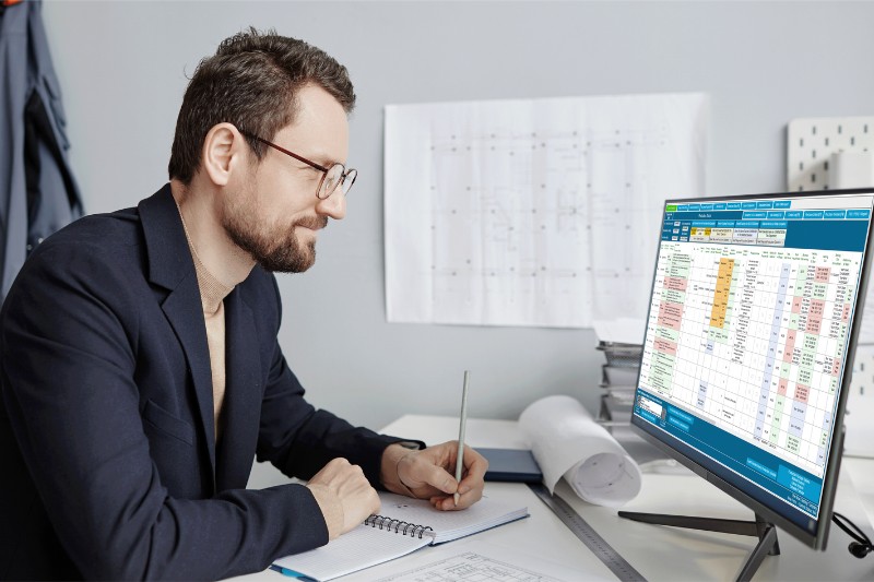 Generate purchase orders, maintain stock control, track items through production and automatically generate time sheets from the Shop floor.
